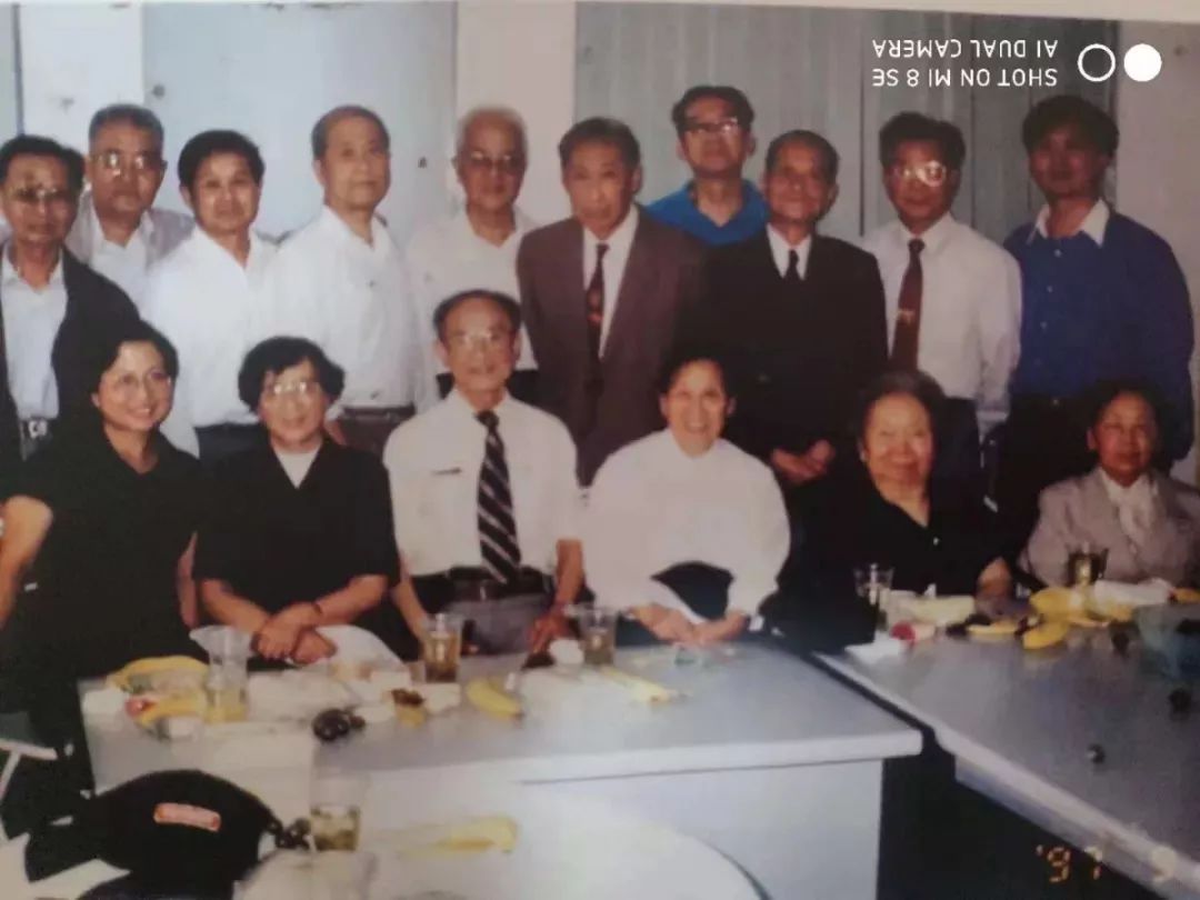 谢希德学姐(前排右二)、楼庆帆学长(后排左四)、陈志雄学长(后排右二)等参加校友聚会活动