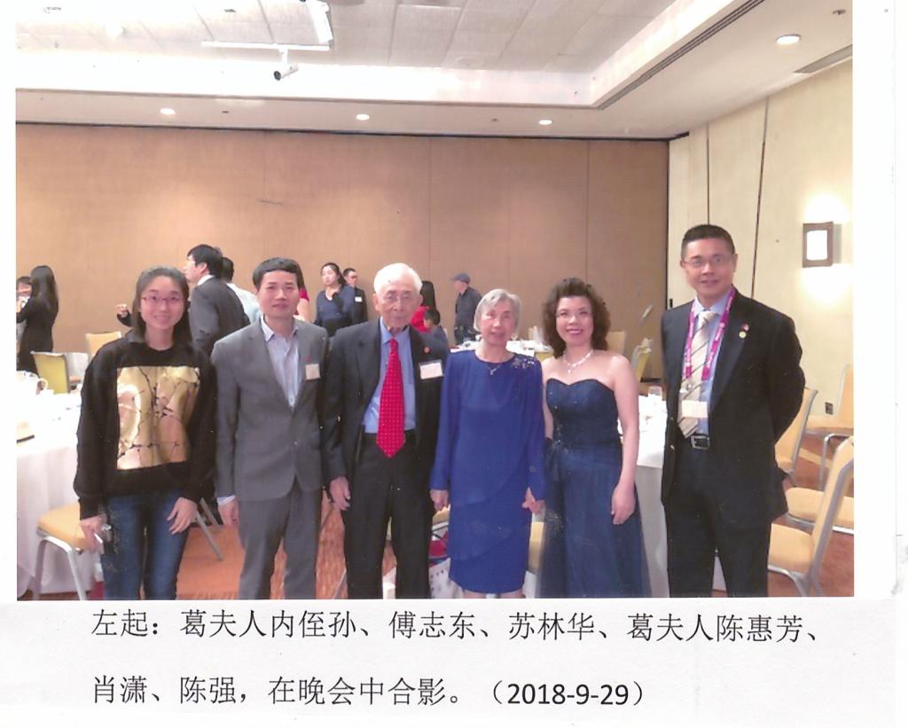 由于我(1948级苏林华)和1946级葛文勋学长都是萨本栋科研基金会四位发起人之一(按:另两位为1944级何宜慈及1947级邵建寅学长),回思往事,现特附上一张2001年4月6日时,葛文勋夫妇、金世添夫妇及我在颂恩楼落成典礼後、在楼前的合影于此)。