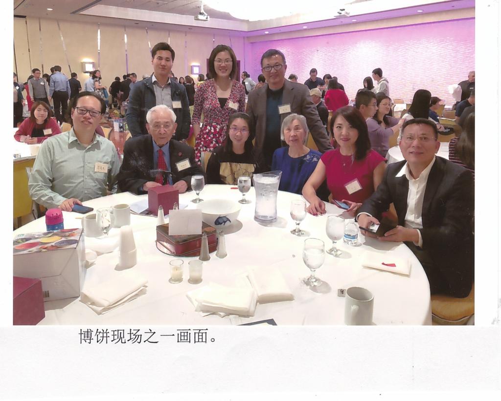 下午6;30—8:00晚宴,为自助餐性质。因也有余兴,故早上担任大会主持人之肖潇学长再度登场,但这次是专为美洲校友会董事会前主席葛文勋夫人陈惠芳的光临而站台。歌唱家葛夫人虽年届九十,但嗓音圆润嘹亮,表现不减当年,故掌声不绝。(按:葛学长去年12月4日在北加州Palo Alto家中过世,享年94岁;今夜葛大嫂由侄孙女陪同、前来参加)。