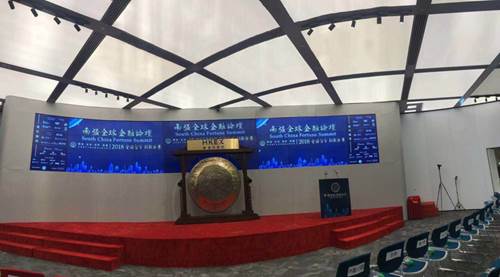 当天上午, 香港联合交易所的大厅布置的庄严而时尚, 港交所的巨型“定海神锣”现身在讲台中央。厦门大学金融界精英们将在这国际金融中心,谱写“自强不息 止于至善”新篇章。借助国家改革开放四十周年的东风,全球厦门大学金融校友联合会在这里庄严宣告正式成立。由该会主办的以“开放、全球、创新、发展”为主题的南强全球金融论坛正式开讲,探讨全球各地经济形势,发掘最具增长潜力产业,捕捉科技和创新带来的投资机会。当主持过逾百场重要财经论坛,凤凰卫视金石财金主持人曾静漪女士,以一口珠圆玉润的嗓音喊出“各位嘉宾,各位厦门大学的校友,各位与会的朋友们, 南强全球金融论坛将在一分钟后开始。”顿时只见在场外叙旧的人们鱼贯而入,在场内的人们择位而坐,没有位置的义工和旁听者,自觉地站在座位旁边、围墙内。一分钟后, 来自全球各地共计300余人的金融业内翘楚及厦大菁英们雅雀无声,翘首等待这场盛会正式“鸣金开锣”。