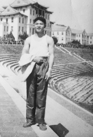 左下图是1971年夏天,我站在建南礼堂前拍摄的。建南礼堂是当时厦大唯一的地标性建筑,建筑风格古典与现代相结合,是能容纳几千人的会议大礼堂,气势宏伟壮观。建南礼堂与东西侧四楼于1952年开工,1954年竣工,是陈嘉庚先生亲自参与设计、督建,由其女婿李光前先生为主的福建南安华侨捐资而建,故起名为建南楼群。照片上,建南礼堂的东侧是南光楼和成智楼,西侧的南安楼和成义楼没进入镜头中。建南礼堂主楼与东西侧四楼秉承嘉庚建筑的“一主四从”传统布局,矗立在山坡上,楼前为半椭圆形的大运动场,利用楼群与运动场之间的落差,因地制宜地砌成可容纳两万人的大看台。五幢建筑弧形排开,面向大海,环抱美丽的上弦场(运动场与看台都呈弧形,恰似上弦月,故称之为“上弦场”)。厦大建南礼堂不仅是厦大地标,也是厦门市的标志性建筑之一。为怀念厦大校主、华侨领袖陈嘉庚先生,每位到厦大读书的学子,必到厦大建南礼堂前留影纪念,这也就是我在建南礼堂前拍照的初衷。