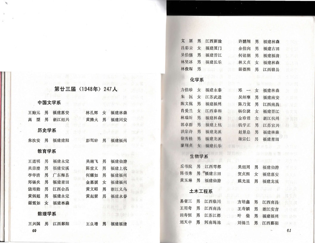 幸而“厦门大学校史编委会” 出版了《厦大校史资料 第六辑----学生毕业生名录》,在第60页至65页间、示出我们 “第二十三届(1948年)247人“ 毕业生名录 。 今附如下,足以证明一切!