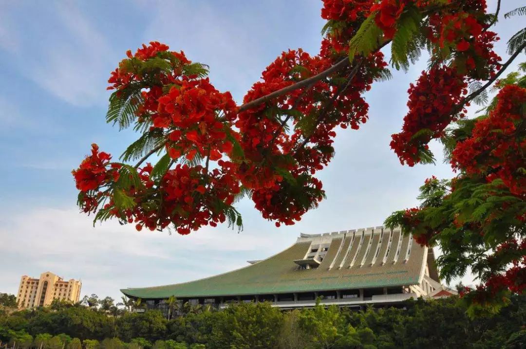 鲜红的三叶梅,光耀夺目地,盛开在母校的路旁。