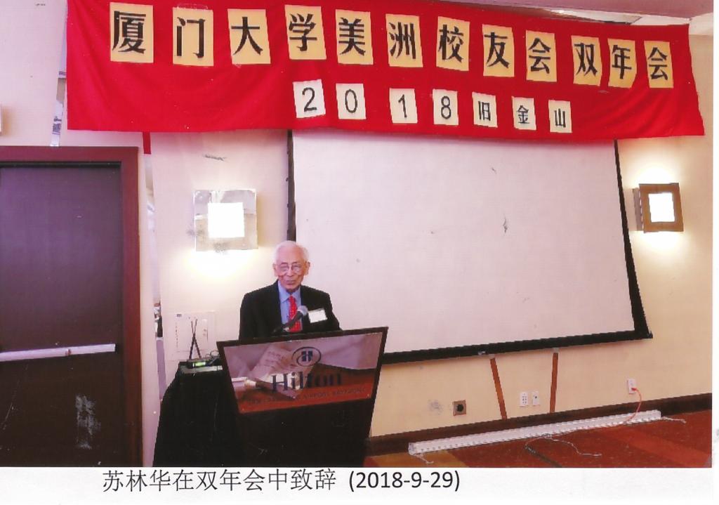 去年(2018)9月底,应美洲校友会之邀、飞到旧金山参加“厦门大学美洲校友会2018双年会”,我由外孙女张洛萱陪同,9月28日飞抵旧金山,住进“旧金山湾区希尔顿旅馆”,也就是次日会场之所在地。母校特请张彦党委书记来美主持美洲校友会理事会换届典礼。次晨(9月29日)他进会场时,我即迎之、并合影。