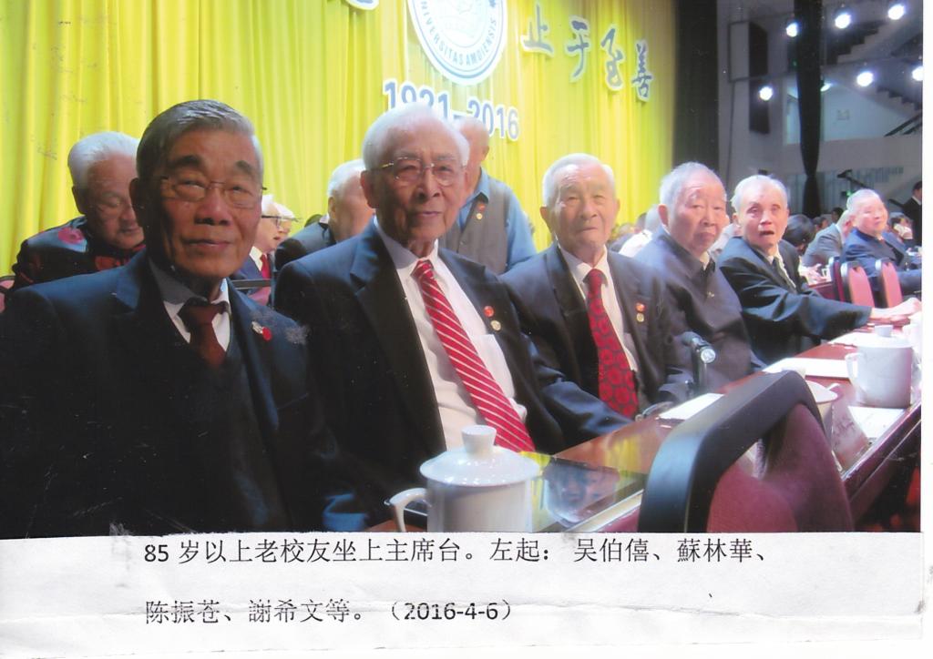 忆2016年母校九十五周年校庆时,校方邀请四十年代85岁以上之高龄校友登上主席台,计有1946届庄昭顺;1947届邵建寅、陈振苍;1948届吴伯僖、陈华、周咏棠、苏林华、何永龄、丘书院、纪华盛、陆家沂、沈鼎旌、徐其礼、及沈咏仁之遗孀殷凤娟;1949届刘藻文、周纯端、连行健、丘建平、蔡厚示,以及1950届谢希文等在座。