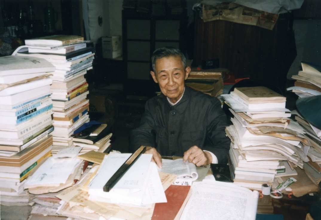 这是上世纪90年代,在韩国磐先生家中,前去上课的博士生随手拍下的一张珍贵照片。这里既是韩先生的会客室,也是韩先生伏案工作的书房。在上课的日子,这里又变成了授课的课堂。简陋的老式书桌上堆满了各种书籍资料,韩先生的日常生活便是埋在书堆里读书写作。韩先生大部分文章和著作,包括被誉为经典并广为流传的两部“史纲”,都是在这里完成的。