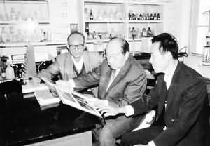 汪德耀教授与细胞研究室科研人员分析实验结果。 (姚凡 翻拍)