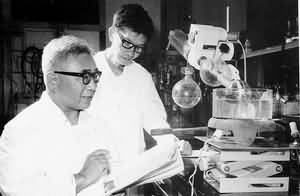 卢嘉锡在合成实验室里和青年科研人员一起进行固氮模型物合成研究。 (姚凡 翻拍)