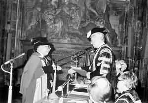 1987年,卢嘉锡接受英国伦敦市立大学授予的名誉博士学位。(姚凡 翻拍)