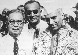 尼赫鲁(右)访问新加坡期间受到陈嘉庚的热烈欢迎。(资料图片)