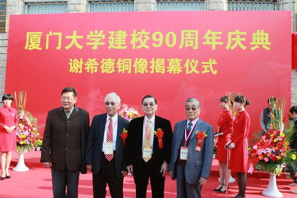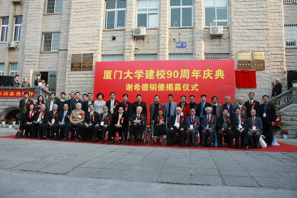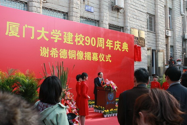 为纪念厦门大学杰出校友、著名的物理学家与教育家谢希德,校庆期间上海校友会向学校捐赠谢希德铜像,并于4月6日在物理馆前举行了捐赠仪式,母校副校长赖虹凯和上海校友会黄辉理事长出席并为铜像揭幕。