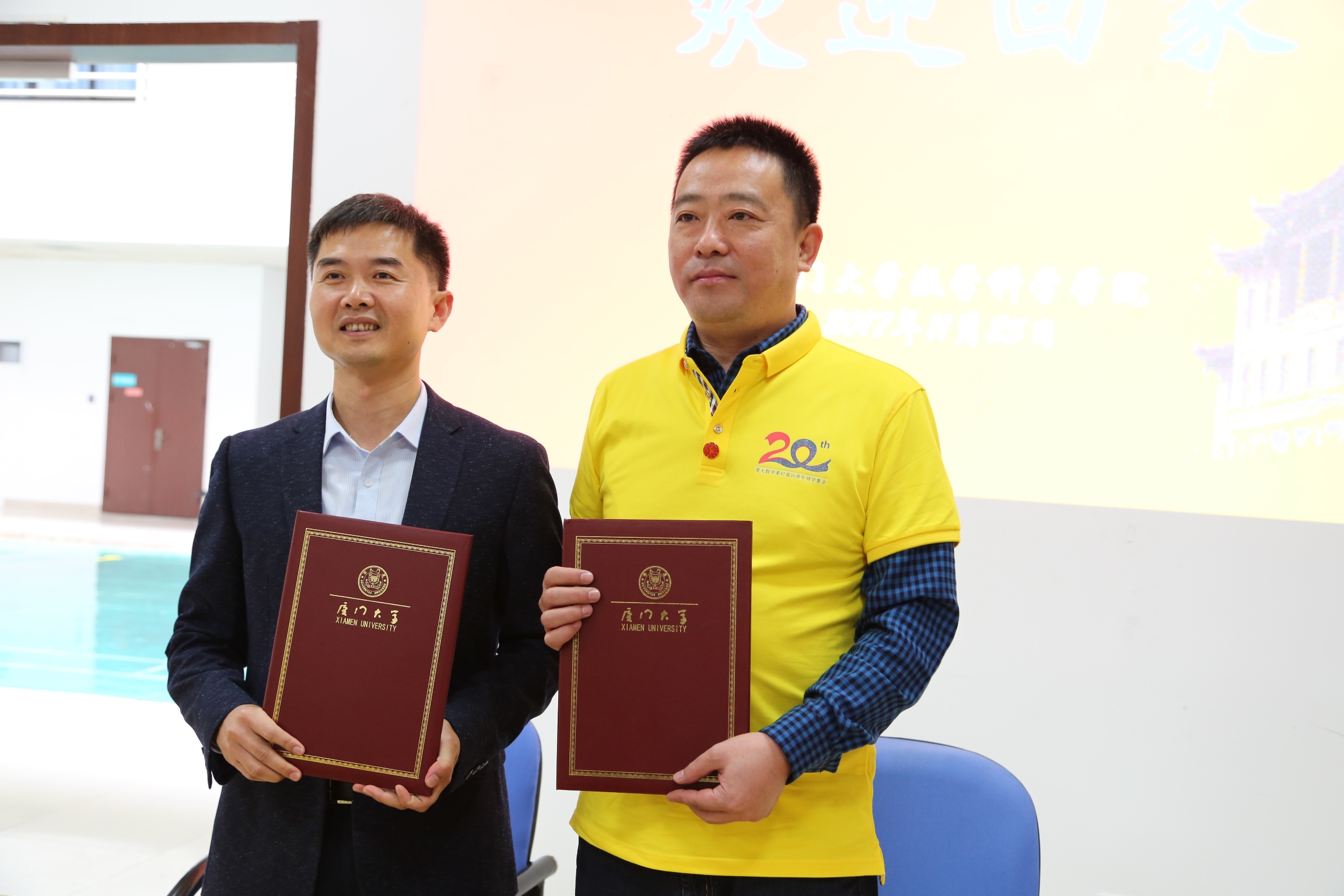 捐赠仪式上,校友们表达了对学院的感恩,希望能为学院的事业发展添砖加瓦,助力学院事业发展再上新台阶。数学科学学院党委书记张明智代表学院对93级校友慷慨解囊,关心数学学子成长成才,支持学院建设和发展表示由衷的感谢。他说,93级校友捐赠奖学金,是学院首个以年级名义捐资设奖的校友群体,生动诠释了93级校友深厚的同学情谊和对母校浓浓的感恩之心,充分反映出93级极强的凝聚力和向心力。相信校友们的义举,一定能激励更多厦大“数学人”团结起来,凝心聚力,推动厦门大学数学学科再创新辉煌。