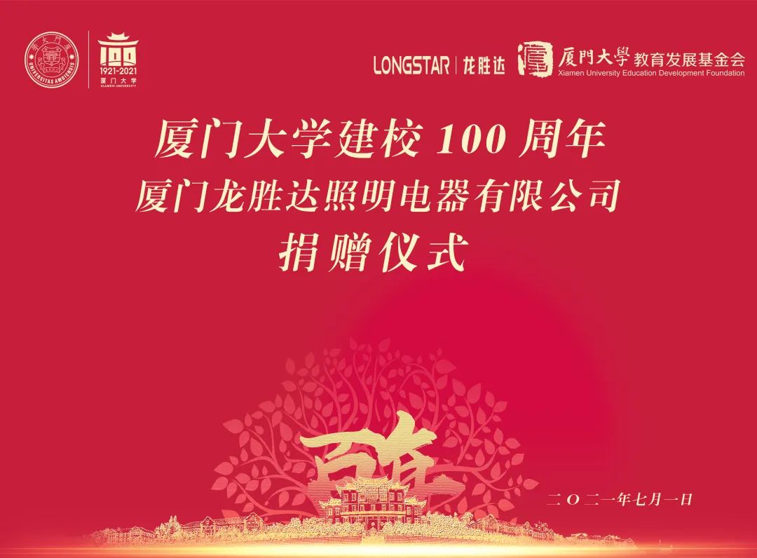 厦门龙胜达照明电器有限公司成立于2002年,是厦门100强重点工业企业,主要研制销售高效LED光源及照明产品,主要市场为北美等高端市场。公司于2019年获评为厦门首批“三高”企业,系列产品获得多家国际权威机构认证。李希龙校友始终心系教育、情系母校。去年9月25日,他就代表企业慷慨捐赠1000万元,设立“龙胜达教育基金”,献礼母校百年校庆。